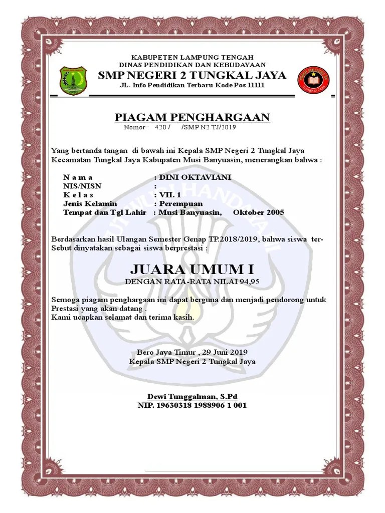 Contoh Piagam Penghargaan Untuk Siswa Berprestasi : Kumpulan Contoh Piagam Penghargaan Siswa Format Microsoft Word Administrasi Pendidikan : Untuk lebih jelasnya lagi mengenai aplikasi piagam penghargaan prestasi siswa format excel ini, silahkan lihat dahulu preview filenya dibawah .. Contoh piagam penghargaan siswa juara kelas; Juara adalah seseorang maupun kelompok yang telah memenangkan turnamen, kompetisi, liga, olimpiade, atau kontes dalam bidang tertentu. Melalui sertifikat penghargaan, pesrta didik/ siswa diperlukan akan menumbuhkan semangat semakin berprestasi kedepannya. Contoh desain piagam penghargaan prestasi belajar siswa hamba allah / surat keterangan . Baik itu penghargaan lomba, prestasi kelas, ataupun jenis piagam atas .